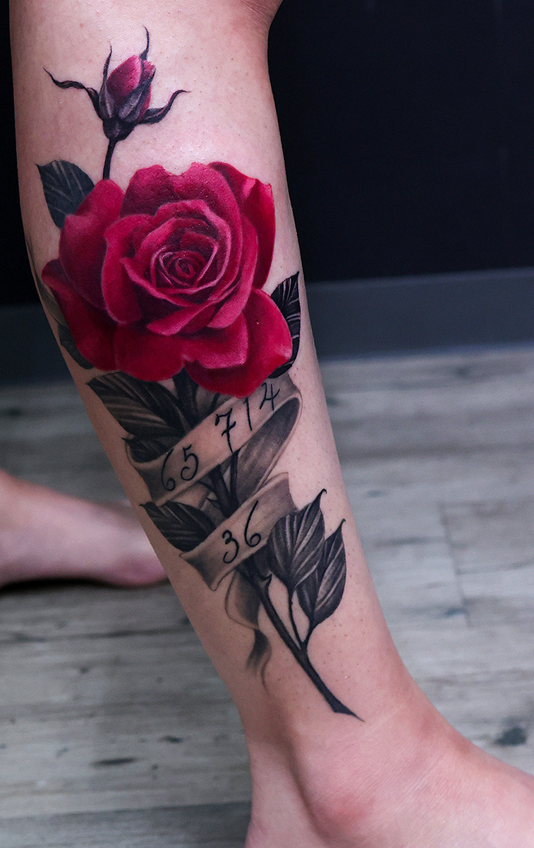 2025.04.06 バラ rose tattoo ふくらはぎにバラのタトゥーが入りました。 バラの花のみカラーで仕上げています。シックな雰囲気で格好良いです。 ありがとうございました。YASUNO 制作事例 関連する記事 雷神 達磨 腕十分袖 刺青 和彫り 2026.03.30 花鳥風月 椿 腕八分袖 刺青 和彫り 2026.03.30 八岐大蛇 腕十分袖 刺青 和彫り 2026.03.30