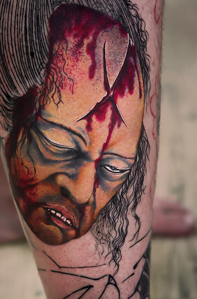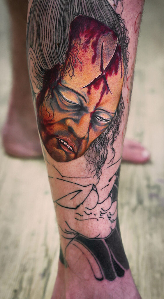 生首のカラーに入りました。まだ途中ですが恐ろしさと不気味さが合わさった良い表情です。と言っても生首は顔の力が完全に抜けていますから表情はないに等しいですね。髪の毛のカラーが入ってくるとお侍さんの生首として、より雰囲気がでてくると思います。