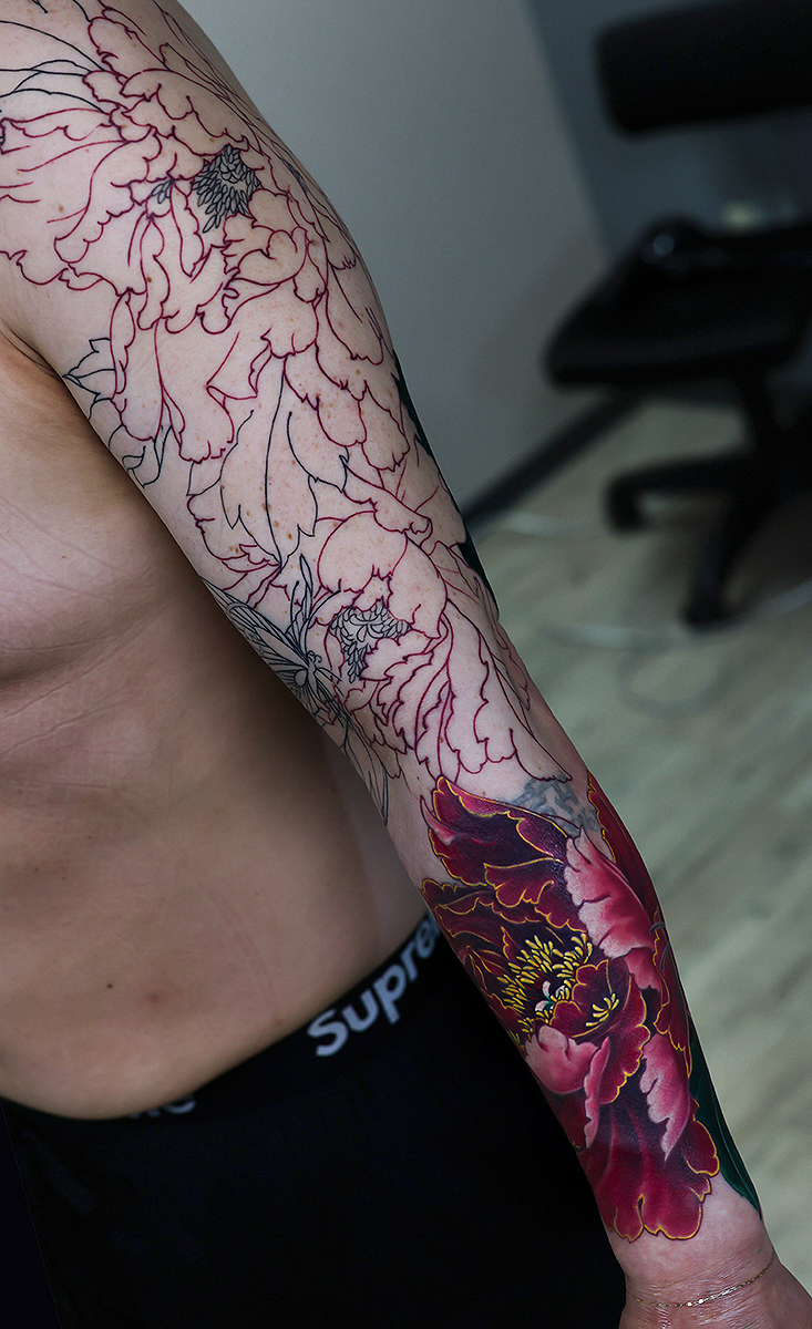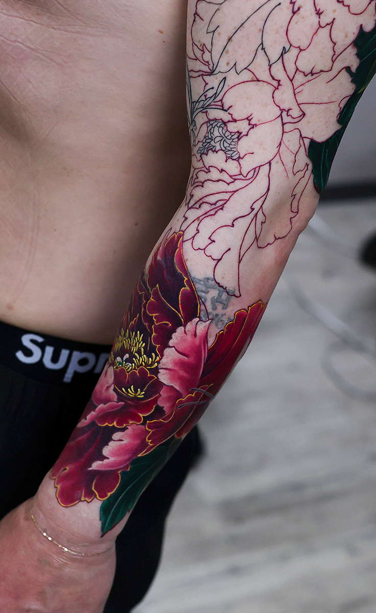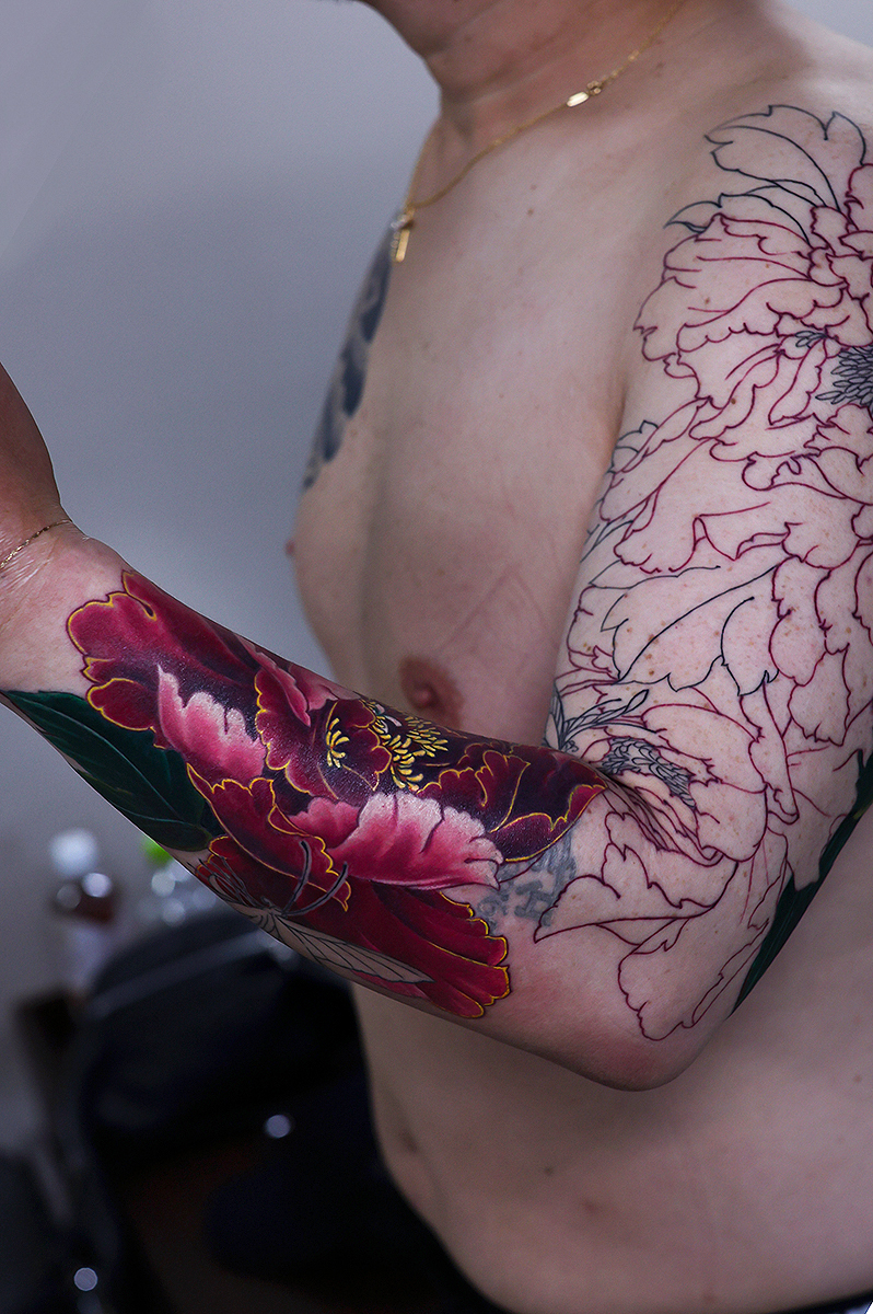 カラーから進めています。胸まで額彫りでしっかりと入る予定です。