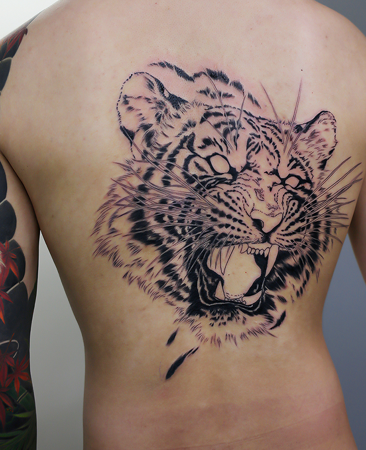 2023.07.11 猛虎 背中一面 スタート 腕につづき、背中の虎、スタートしました! 腕とは表情アングルの異なった虎になっていくと思います。 これからどんどん変化していきます。たのしみですね。 頑張りましょう!お疲れ様でした。 制作事例 関連する記事 菊水 腕十分袖 和彫り 2026.01.07 八岐大蛇 ヤマタノオロチ 腕十分袖 和彫り 2025.12.23 一匹龍 腕十分袖 和彫り 2025.12.23
