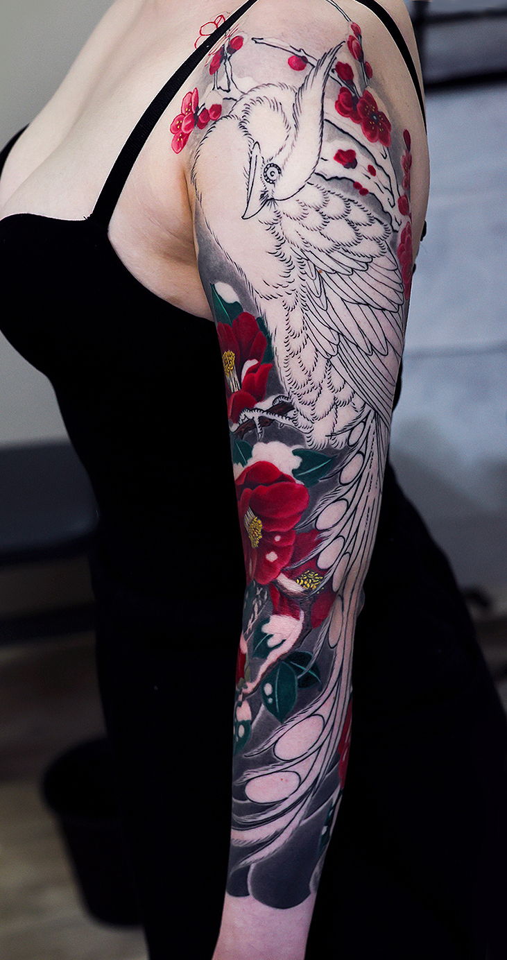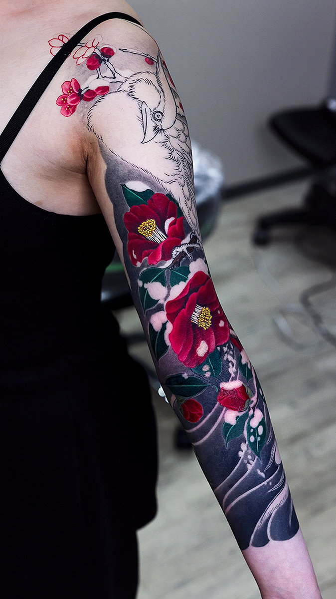 2026.02.16 花鳥風月 雪椿 腕八分袖 和彫り 背景が埋まってきました。尾長鳥、主体が楽しみです。 お疲れ様でした。頑張っていきましょう! 制作事例 関連する記事 一匹龍 腕十分袖 和彫り 2026.02.16 達磨 雷神 腕九分袖 和彫り 2026.02.16 夜叉 生首 脚一本 和彫り 2026.02.16