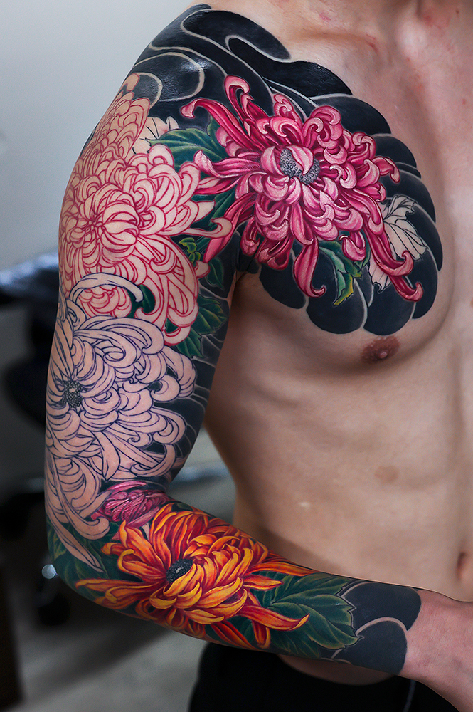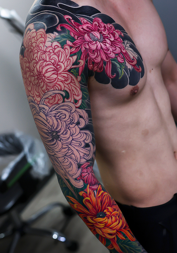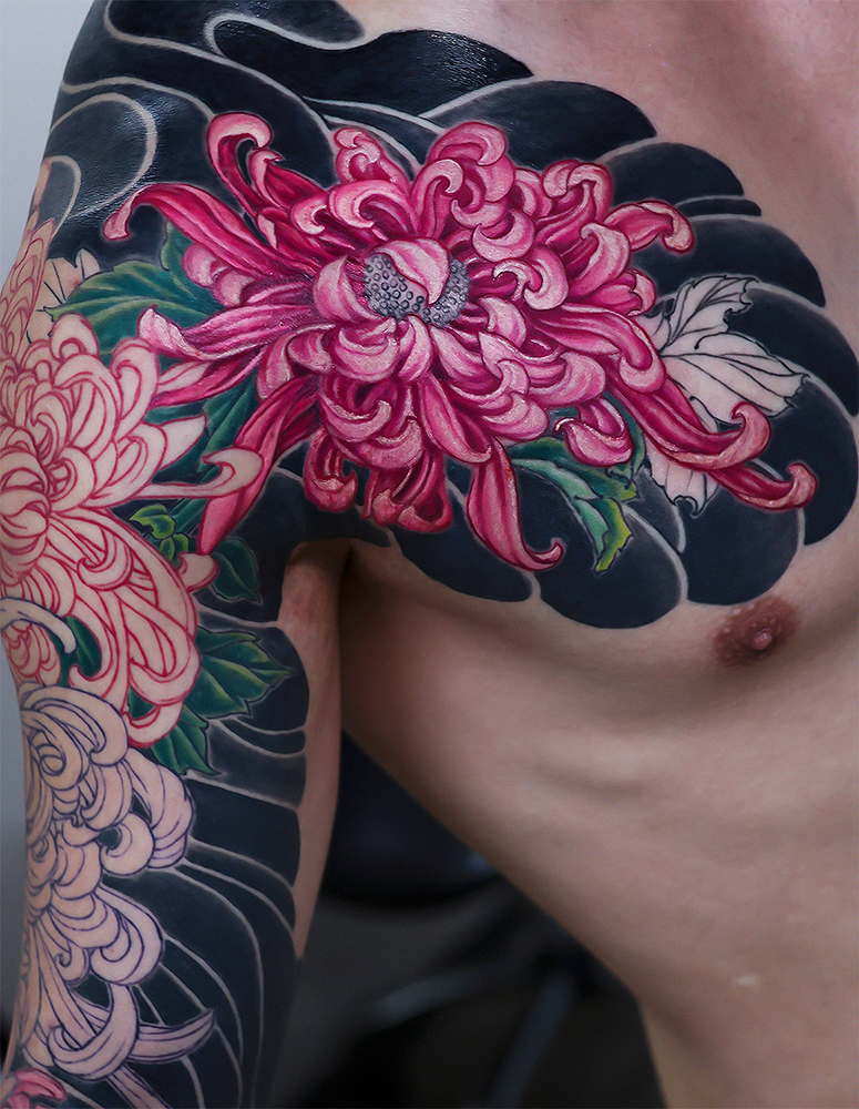 胸の菊中心の施術でした。花びらに動きがありきれいですね!