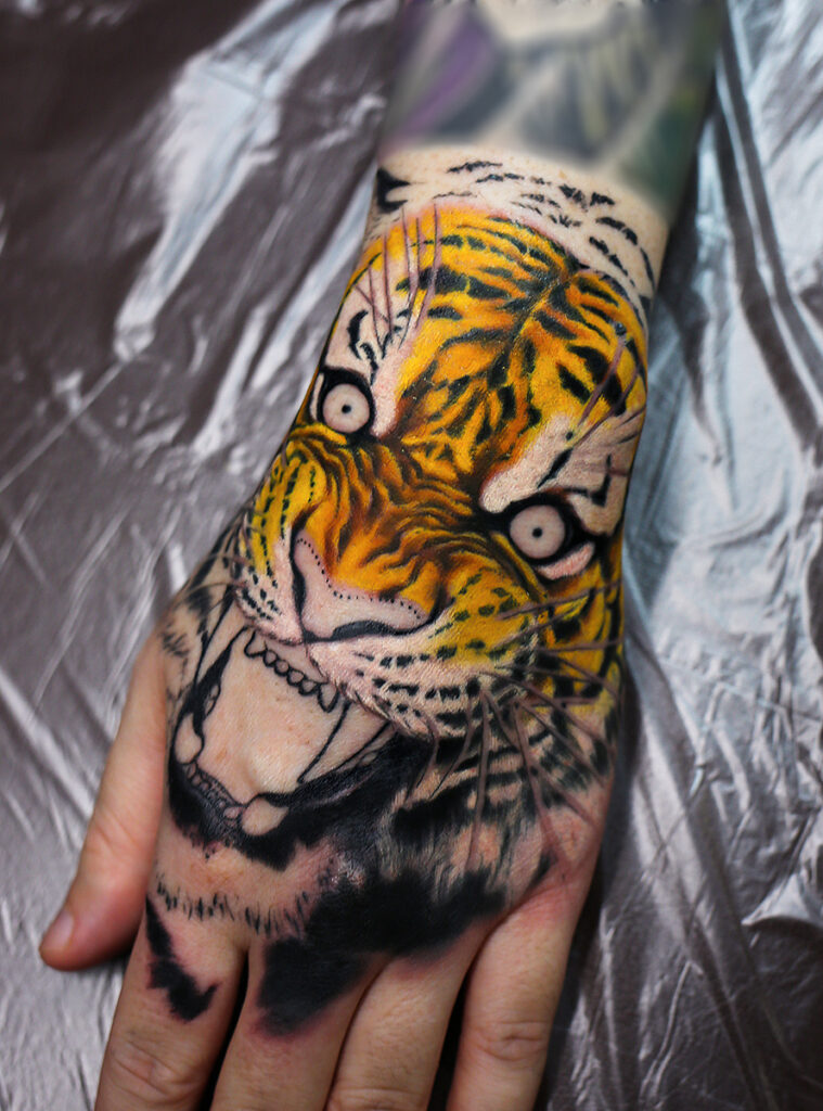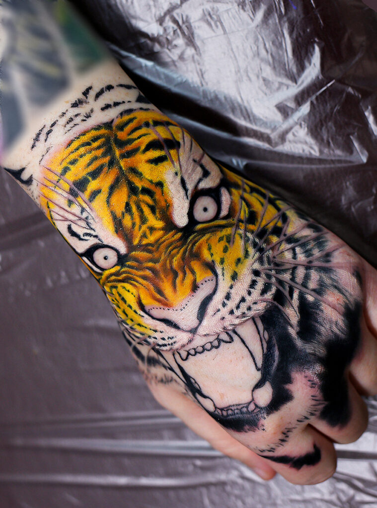 2024.06.17 虎 手の甲 製作中 カラーが入ってきました。 手の甲は他の部位に比べてキメが荒い箇所ですが、細かくディテール施しています。 お客さんも頑張って頂き感謝です。格好良いですね! 引き続き頑張っていきましょう。お疲れ様でした。 制作事例 関連する記事 菊水 腕十分袖 和彫り 2026.01.07 八岐大蛇 ヤマタノオロチ 腕十分袖 和彫り 2025.12.23 一匹龍 腕十分袖 和彫り 2025.12.23