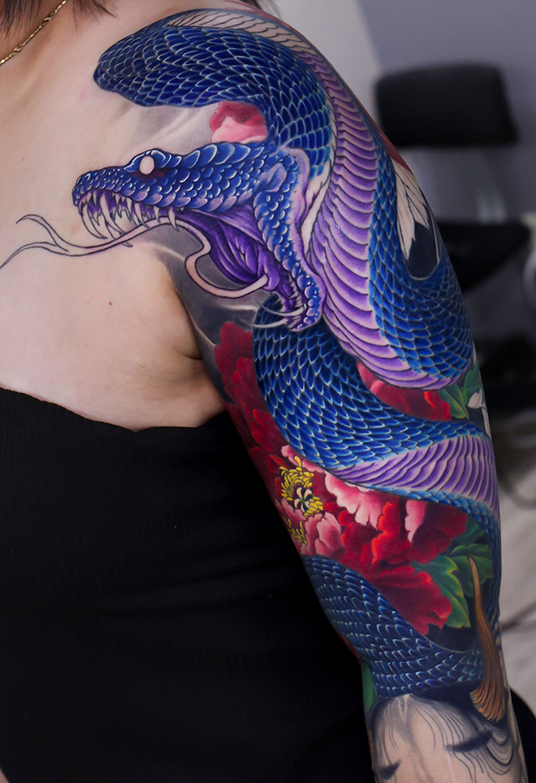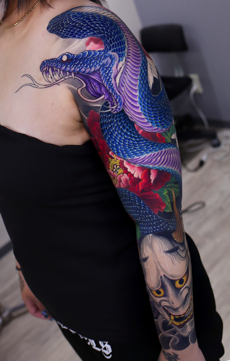八岐大蛇 ヤマタノオロチ 腕十分袖 和彫り